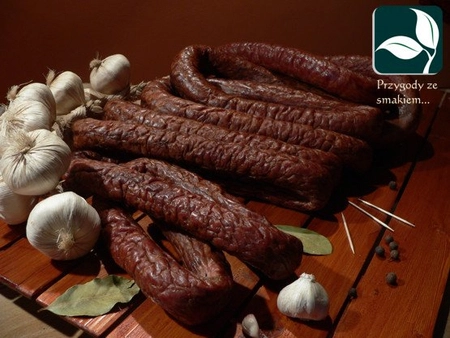 - Produkt został wpisany na Listę Produktów Dziedzictwa Kulinarnego. a kiełbaska im dłużej sobie wisi i sie suszy tym jest lepsza. Jej łupka to jelito naturalne lekko pomarszczone o barwie ciemno brązowej w dotyku mało elastyczna, łamie się z ...