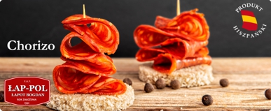• Chorizo specjal jest naszą kolejną propozycją hiszpańskiej wędliny dojrzewającej. Papryka, czosnek, sól, pieprz są to podstawowe przyprawy używane w produkcji tej tradycyjnej hiszpańskiej specjalności. W tym gatunku chorizo wyczuwa się charakterystyczny..